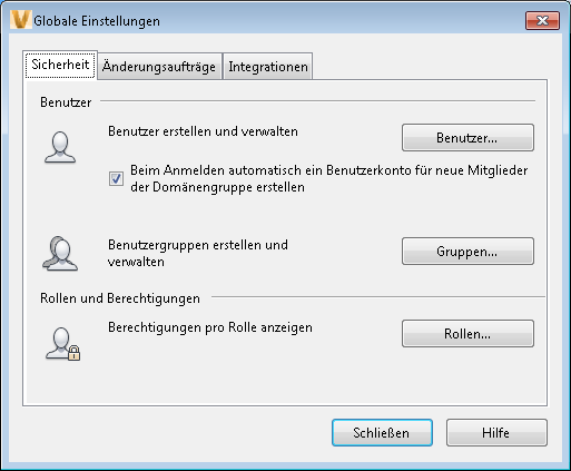 Benutzerkonten werden im Dialogfeld Benutzerverwaltung eingerichtet und verwaltet.
