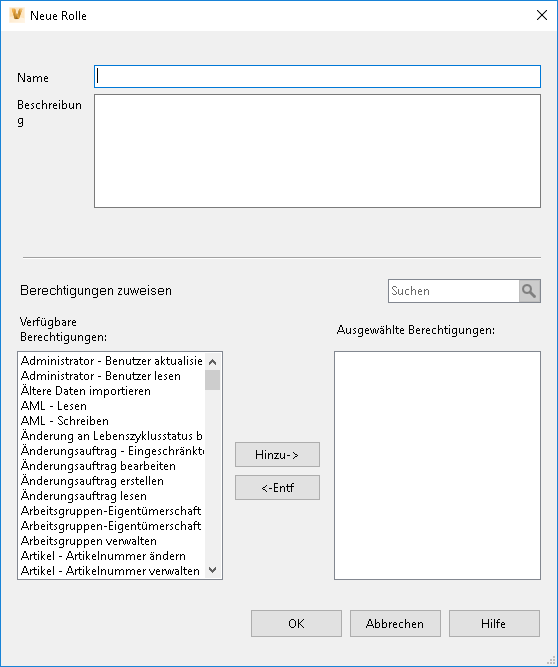 Rollen werden über das Dialogfeld Rollenverwaltung erstellt und verwaltet. Sie können die einer Rolle zugewiesenen Berechtigungen anzeigen, wenn Sie eine Rolle erstellen, kopieren oder bearbeiten.