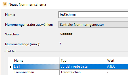 Beachten Sie das folgende Nummernschema TestScheme.