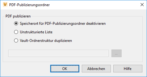 - Speicherort für PDF-Publizierungsordner deaktivieren: Deaktiviert das lokale Publizieren von PDF-Dateien. Automatisch generierte PDF-Dateien werden weiterhin im Vault Client erstellt.