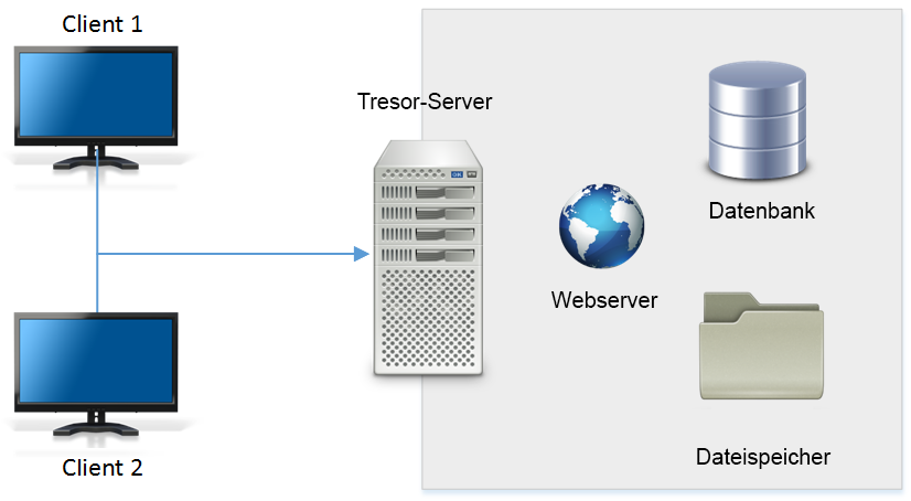 Der Tresor-Server speichert und bewahrt Dateien und Metadaten auf, aus denen der Tresor besteht. Diese Daten werden von Microsoft SQL Server, einer relationalen Microsoft-Datenbank, verwaltet. Die Serversoftware kann auf einem Server oder einer von allen Benutzern gemeinsam verwendeten Arbeitsstation installiert werden. Für einen einzelnen Benutzer kann der Server zusammen mit dem Client auf einer einzelnen, isolierten Arbeitsstation installiert werden.