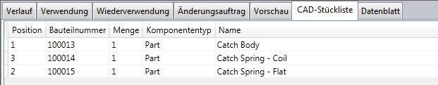 Das CAD-Stücklisten-Vorschaufenster zeigt die Stücklistendetails für die ausgewählte Datei an, einschließlich der aus externen Anwendungen gesammelten Daten.