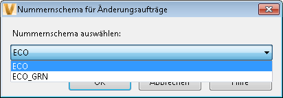 neben dem Namen des Änderungsauftrags, um das Dialogfeld Nummernschema auswählen zu öffnen.