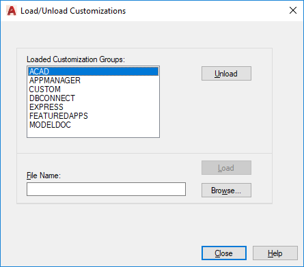 Specifies the file to load when you choose Load. You can either enter the file name or choose Browse to display the Select Customization File dialog box (a standard file selection dialog box).