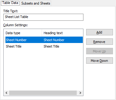Moves the selected column up in the column list and to the left in the sheet list table.