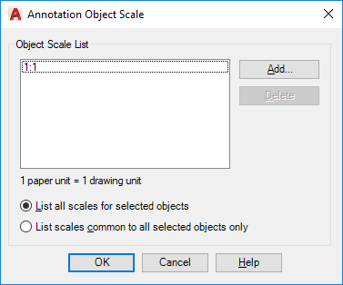 Specifies that all scales supported by the selected objects are displayed in the Object Scale List.