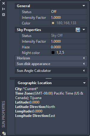 Turns the sun on and off. If lighting is not enabled in the drawing, this setting has no effect.