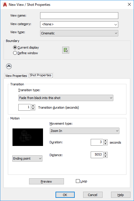 Sets the distance that the motion takes to complete when the named view is assigned the Cinematic view type.