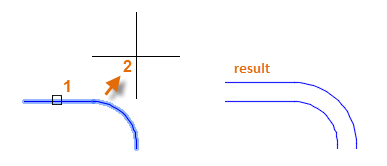 Select the object (1), specify the offset distance, and click to indicate on which side of the original that you want the result (2). Here is an example of offsetting a polyline.