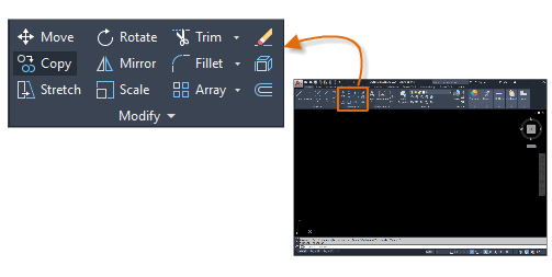 You click the Copy tool or enter CP in the Command window to start the command. From here, you can choose between two methods, depending on what's more convenient. You will use these two methods frequently.