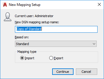 Sets up mapping for the import or export of DGN files.