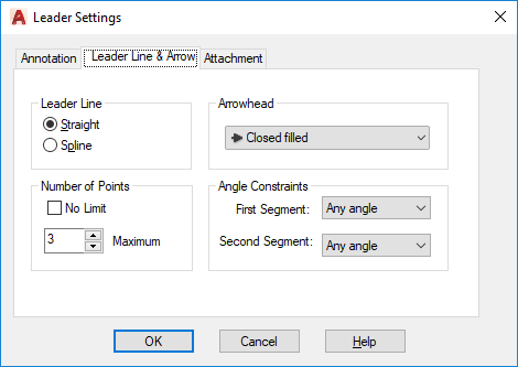 Sets the number of leader points that QLEADER prompts you to specify before prompting for the leader annotation. For example, if you set the points to 3, QLEADER automatically prompts you to specify the annotation after you specify two leader points. Set the number to one more than the number of leader segments you want to create.