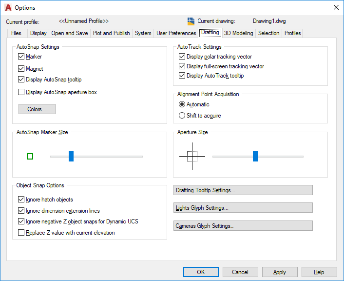 Controls the settings that relate to AutoTrack ™ behavior, which is available when polar tracking or object snap tracking is turned on (see DSETTINGS).