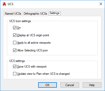 Restores Plan view when the coordinate system in the viewport is changed. (UCSFOLLOW system variable)