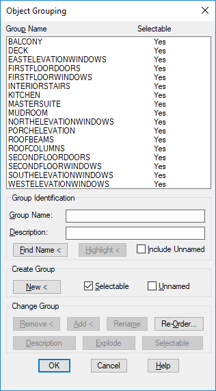 Creates a new group from the selected objects, using the name and description under Group Name and Description.