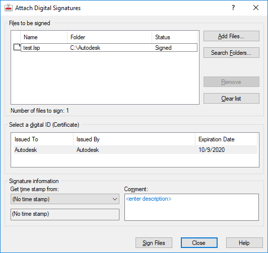 Attaches a digital signature to every file listed in this dialog box.