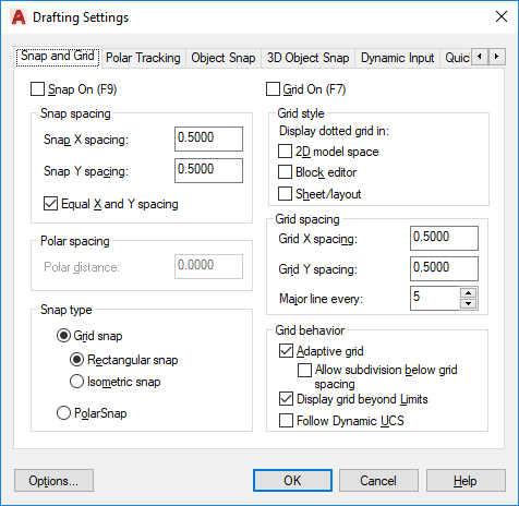 Generates additional, more closely spaced grid lines when zoomed in. The frequency of these grid lines is determined by the frequency of the major grid lines. ( GRIDDISPLAY and GRIDMAJOR system variables)