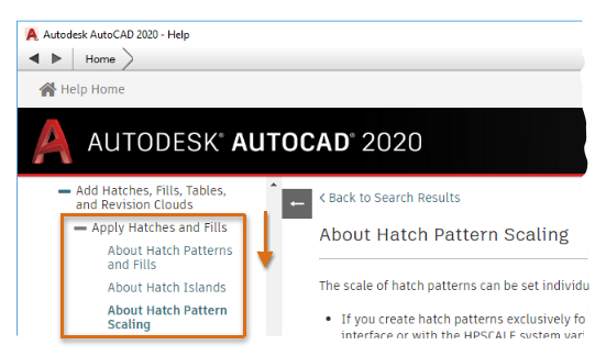 We've now reached our goal of locating the topic about scaling hatches, but let's explore a little further to discover several additional features.