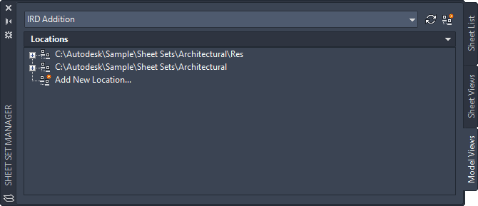 You can add and remove folder locations to control which drawing files are available for the current sheet set.