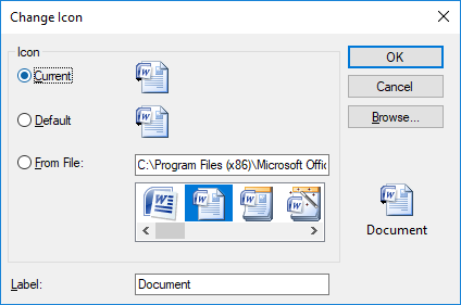 Specifies an icon from a file (valid types include EXE, DLL, and ICO).