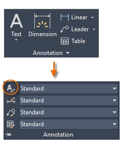 As with several other annotation features, multiline text provides a lot of settings. You can save these settings as a text style using the STYLE command, and then you can access the text styles you've saved by clicking the drop-down arrow on the Annotation panel. The current text style is displayed at the top of the drop-down list.