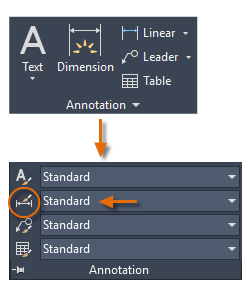 To open the Dimension Style Manager, click the indicated button. You can create dimension styles that match nearly any standard, but you will need to invest time to specify them completely. For this reason, you should save any dimension styles that you create in one or more drawing template files.