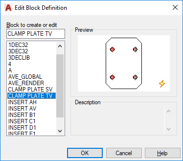 Select from a list of block definitions that are saved in the drawing to edit in the Block Editor. You can also enter a name for a new block definition to create in the Block Editor.