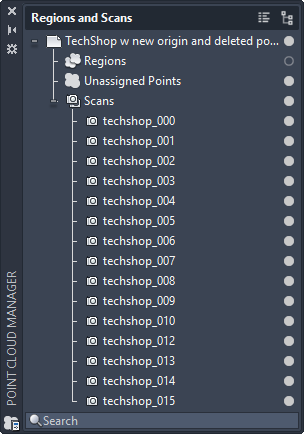 Lists the regions that have been defined in Autodesk ReCap Pro for the attached point cloud.