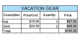 By default, there are three styles of cells that appear when you use the Standard table style: