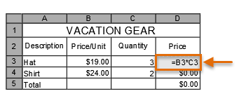 If you assigned the data format as Currency, the $ symbol will appear automatically. The $0.00 entries are needed as placeholders for the format. If the values for the currency columns don't display the $ symbol, right click and then choose Data Format to change the cell data format to Currency.