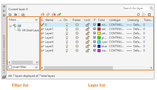 Displays the Layer Filter Properties dialog box, where you can create a layer filter. Layer filters limit the layers listed in the Layer Properties Manager to those with specified settings and properties. For example, you can limit the list of layers to only those that are turned on and thawed.