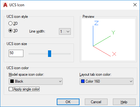 Controls the line width of the UCS icon if the 3D UCS icon is selected.