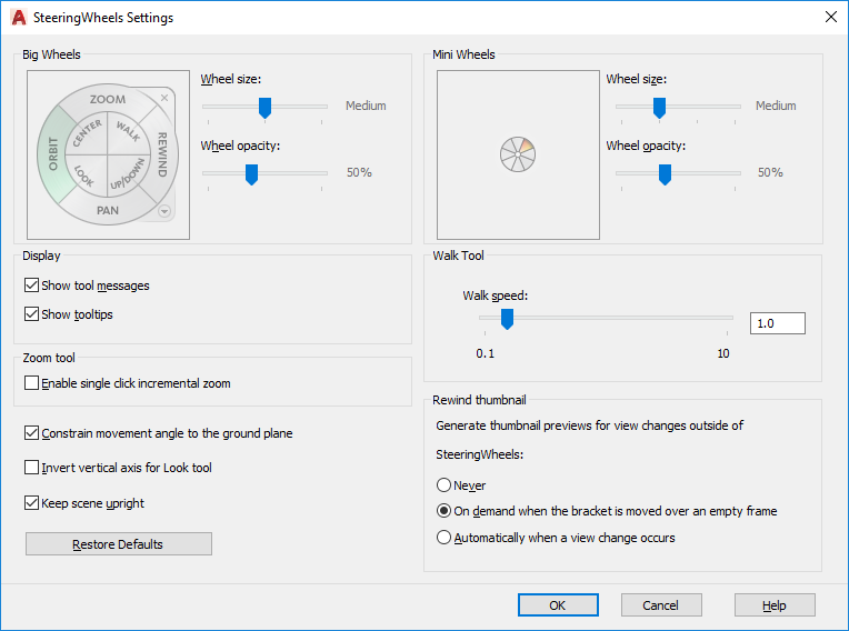 Controls when thumbnails are generated for view changes that are made without using a wheel. The generated thumbnails are used for the Rewind tool.