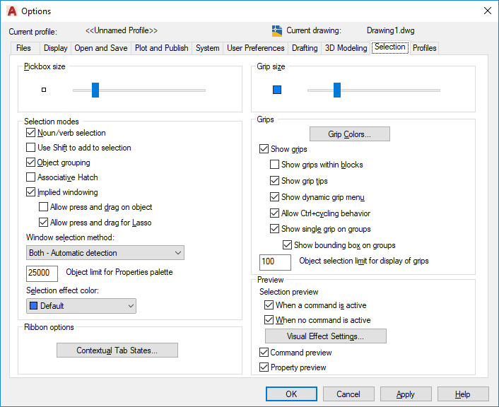 Controls whether you can preview the outcome of the active command. (COMMANDPREVIEW system variable)