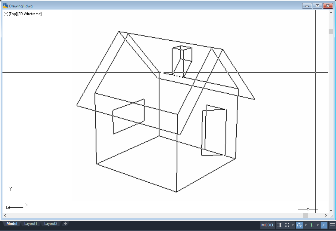 If you press Enter at the Select Objects prompt, DVIEWBLOCK displays a preview image. You can create your own DVIEWBLOCK block in a 1 unit by 1 unit by 1 unit area, with its origin at the lower-left corner. The following illustration shows an example of using the default DVIEWBLOCK to set the view (moving the graphics cursor adjusts the view).