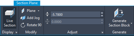 When you select a section line, the Section Plane contextual tab is displayed on the ribbon.