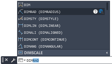 If you start typing the name of the command or system variable on the command line, the autocomplete feature displays your choices. For example, if you enter dim, all commands and system variables that begin with those letters are listed as shown.