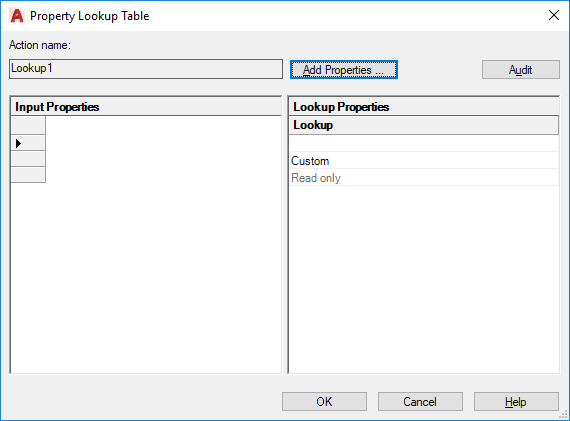 Displays the custom value assigned to the input properties. Click the bottom of a lookup column to make the lookup property read-only or to allow reverse lookup. Allow Reverse Lookup enables a drop-down list associated with the lookup grip that changes the block reference to match the input property values in the table.