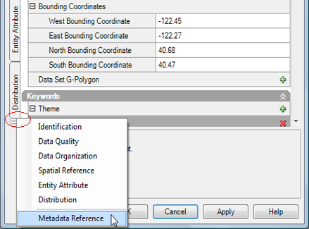 , updating from the data source, using templates, copying and pasting, or importing from similar sources, some data must be entered manually. The Metadata Editor (FGDC) provides an interface in which to enter and manage your metadata.