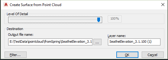- Click the point cloud data in the drawing. Press Enter to finish selecting objects. The