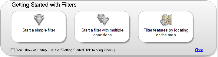 To close the startup page, click Close.