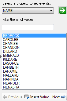 - Click the green arrow next to Get Values and select the property whose values you want to see.
