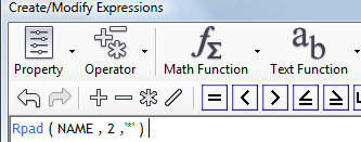 For example, if you are padding the right side of a text string with three asterisks, the expression looks like this one: