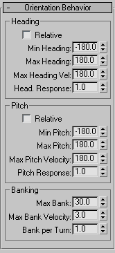 You can also specify heading limits in amounts relative to the delegate's heading at the time that the Orientation behavior takes effect by turning on the Relative checkbox.