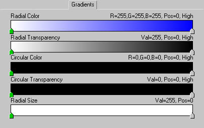 The last five options on the shortcut menu are different types of compositing methods. When you work with Color and Transparency gradient controls in any of the Lens Effects filters, you must be aware of both the Radial and Circular gradients. Both Lens Effects color gradients and both Transparency gradients are "locked together" and will work together based on the compositing method you choose to create an effect.