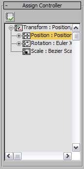 The Assign Controller rollout assigns and appends different transform controllers to individual objects. You can also assign controllers in Track View.