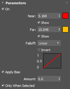 - Sets the farthest distance of the effect. Click the color swatch to select a new color for the associated gizmo, if desired.