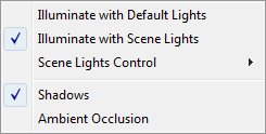 Use this menu to choose visual quality options and global viewport settings for Nitrous displays.