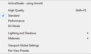 - Set the viewport to ActiveShade mode, which gives you a preview rendering that can help you see the effects of changing lighting or materials in your scene. When you make adjustments, ActiveShade interactively updates the rendered lighting and materials. The menu item also shows the current renderer being used by ActiveShade, or if an incompatible renderer is currently set.