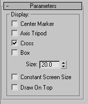- Adjust the size of the point object by using the Size spinner in the Parameters rollout. Default=20.0